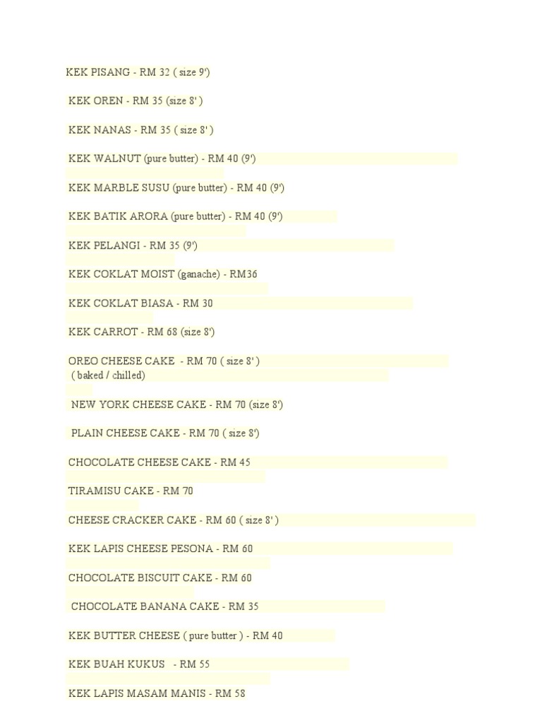 Mira Cake House Berikut Ini Adalah Senarai Kek Untuk Facebook